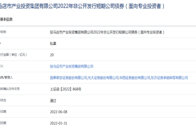 成功獲批非公開發(fā)行20億元短期公司債面對復(fù)雜嚴(yán)峻的經(jīng)濟(jì)形勢,駐馬店市產(chǎn)業(yè)投資集團(tuán)有限公司緊緊圍繞市委、市政府戰(zhàn)略部署,2022年6月8日,集團(tuán)非公開發(fā)行20億元短期公司債成功獲得上海證券交易所批準(zhǔn)。此次非公開發(fā)行短期公司債券20億元,不超過1年期(含1年),債券品種為私募,承銷商為國泰君安、光大證券…